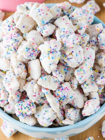 Sugar Cookie Puppy Chow is oh-so sweet, colorful, and crazy addictive! Seriously, you can’t just have one bite of this Chex Mix coated with...